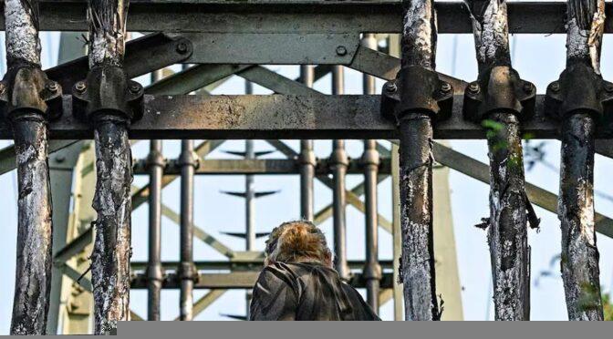 [Catatan dari Sans Nom: Pada hari Selasa, 9 September, di distrik selatan Berlin, sekitar pukul 3.30 pagi, api melalap dua pilon listrik 110-kV setinggi-35-meter yang terletak di Jalan Königsheide distrik Johannisthal, memutus aliran listrik taman teknologi terbesar di Eropa yang berlokasi tak jauh dari Altendorf. Rantai baja juga melilit selubung insulasi kabel sehingga menyebabkan arus pendek ketika meleleh dalam kobaran api. Dua pilon ini berada di ujung saluran udara, tempat listrik dialirkan dari udara ke jalur bawah tanah.