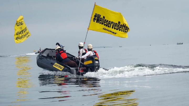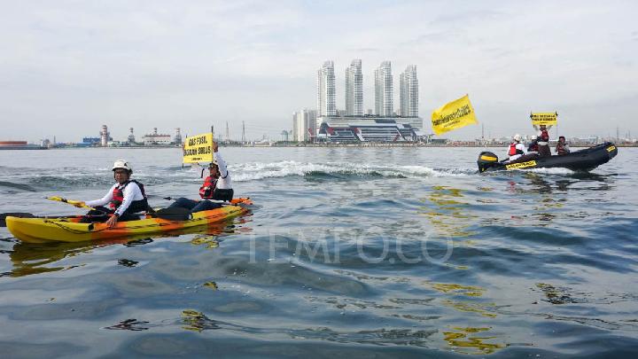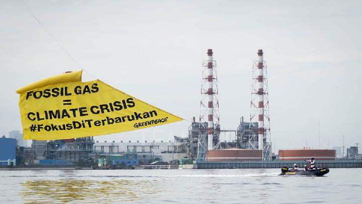 Aktivis Greenpeace Menggelar Protes di PLTGU Muara Karang