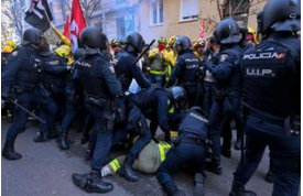 11/12, Madrid, Spanyol. Bentrokan antara pemadam kebakaran yang sedang mogok kerja dan polisi meletus di kantor pusat Tragsa selama demonstrasi lain yang dilakukan oleh pemadam kebakaran hutan Madrid, yang telah melakukan mogok kerja selama lebih dari 150 hari. Polisi menggunakan tongkat, semprotan merica, dan gas air mata untuk menyerang pemadam kebakaran yang berkumpul di luar rapat umum pemegang saham Tragsa untuk menuntut agar perusahaan publik tersebut memulai negosiasi dengan pekerja mengenai perjanjian kolektif baru (yang kadaluwarsa pada 2012). Setidaknya 10 petugas pemadam kebakaran dibawa ke rumah sakit, beberapa di antaranya terkena gas air mata di wajah, dan sembilan orang ditangkap. Sejak Juli 2025, petugas pemadam kebakaran hutan di Komunitas Madrid telah melakukan pemogokan tak terbatas untuk memprotes kondisi kerja yang tidak layak dan menuntut keamanan yang lebih baik di tempat kerja, termasuk peralatan pelindung terhadap zat karsinogenik, pengisian lowongan untuk mengurangi beban kerja, dan pengakuan resmi kategori profesi petugas pemadam kebakaran hutan.