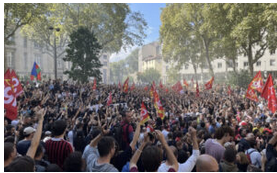 02/12, Prancis. Ribuan orang turun ke jalan dalam aksi mogok nasional besar-besaran dan demonstrasi untuk menentang langkah-langkah pengetatan anggaran yang sedang disiapkan oleh pemerintah Sébastien Lecornu untuk tahun 2026. Sebanyak 150 demonstrasi di beberapa kota Prancis diorganisir oleh serikat pekerja menentang pemotongan besar-besaran pada posisi guru dan tenaga medis yang direncanakan dalam anggaran pemerintah untuk tahun 2026, serta menuntut kenaikan upah, keadilan sosial dan perpajakan, serta sumber daya untuk layanan publik, terutama rumah sakit.
