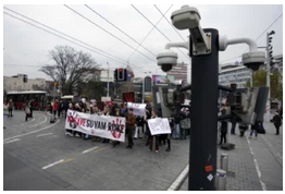 12/14. Berlin, Jerman. Kelompok neo-Nazi berencana mengadakan pawai di Friedrichshain dan Lichtenberg. Demonstrasi besar dilakukan untuk menentang pawai tersebut. Pada akhirnya, pawai tersebut dibatalkan. Selama berminggu-minggu, aktivis telah mempersiapkan protes menentang pawai sayap-kanan yang direncanakan dimulai di Ostkreuz dan melewati kawasan alternatif Friedrichshain. Sejak pawai di Marzahn pada Oktober (Aufmarsch in Marzahn im Oktober, artikel dalam bahasa Jerman), ini adalah kali kedua dalam waktu dekat para neo-Nazi, beberapa di antaranya masih sangat muda, muncul dengan sikap agresif, sebagian besar mengenakan masker. Mereka meneriakkan slogan-slogan sayap-kanan dan mengancam penduduk setempat, banyak di antaranya secara spontan memasang spanduk di balkon dan jendela mereka. Sekitar 50 neo-Nazi akhirnya ikut serta dalam pawai pada Sabtu. Beberapa ribu orang ikut serta dalam total 13 pawai-tandingan untuk menyatakan penolakan mereka. Pawai Nazi dihentikan kurang dari setengah jalan dari rute yang direncanakan, setelah lebih dari 2.000 orang berdemonstrasi melawan mereka langsung di jalan tempat mereka akan berbaris. Neo-Nazi yang dihentikan diantar ke stasiun kereta bawah tanah dan bepergian ke Lichtenberg, titik akhir rute yang direncanakan.